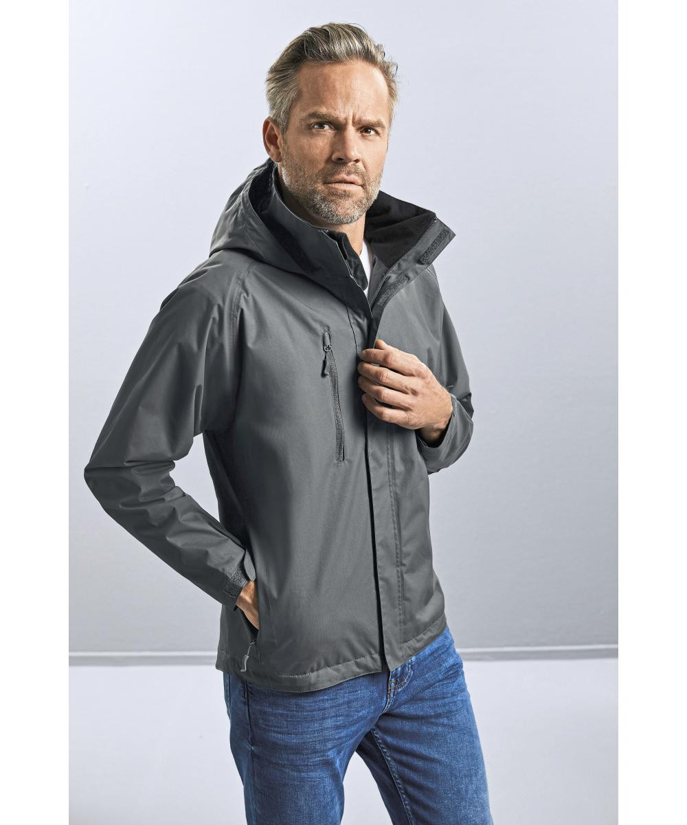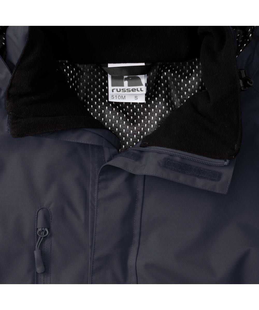Nylon Taslon | Wasserdichtes Gewebe bis 2.000 mm (PU-Beschichtung) | Kritische Nähte verschweißt | Atmungsaktiv: 2.000 g/m² in 24 Stunden | Im Kragen integrierte, 3-teilige Kapuze | Gefütterter Innenkragen | Komplett gefüttert | Gefütterte Taschen mit Reißverschluss | Raglan-Ärmel mit vorgeformter Ellenbogenpartie | YKK-Reißverschluss und doppelte Regenblende mit zusätzlicher Klettbandschließe | Kordelzug im Saum | Integrierte Handytasche | Veredelungszugang