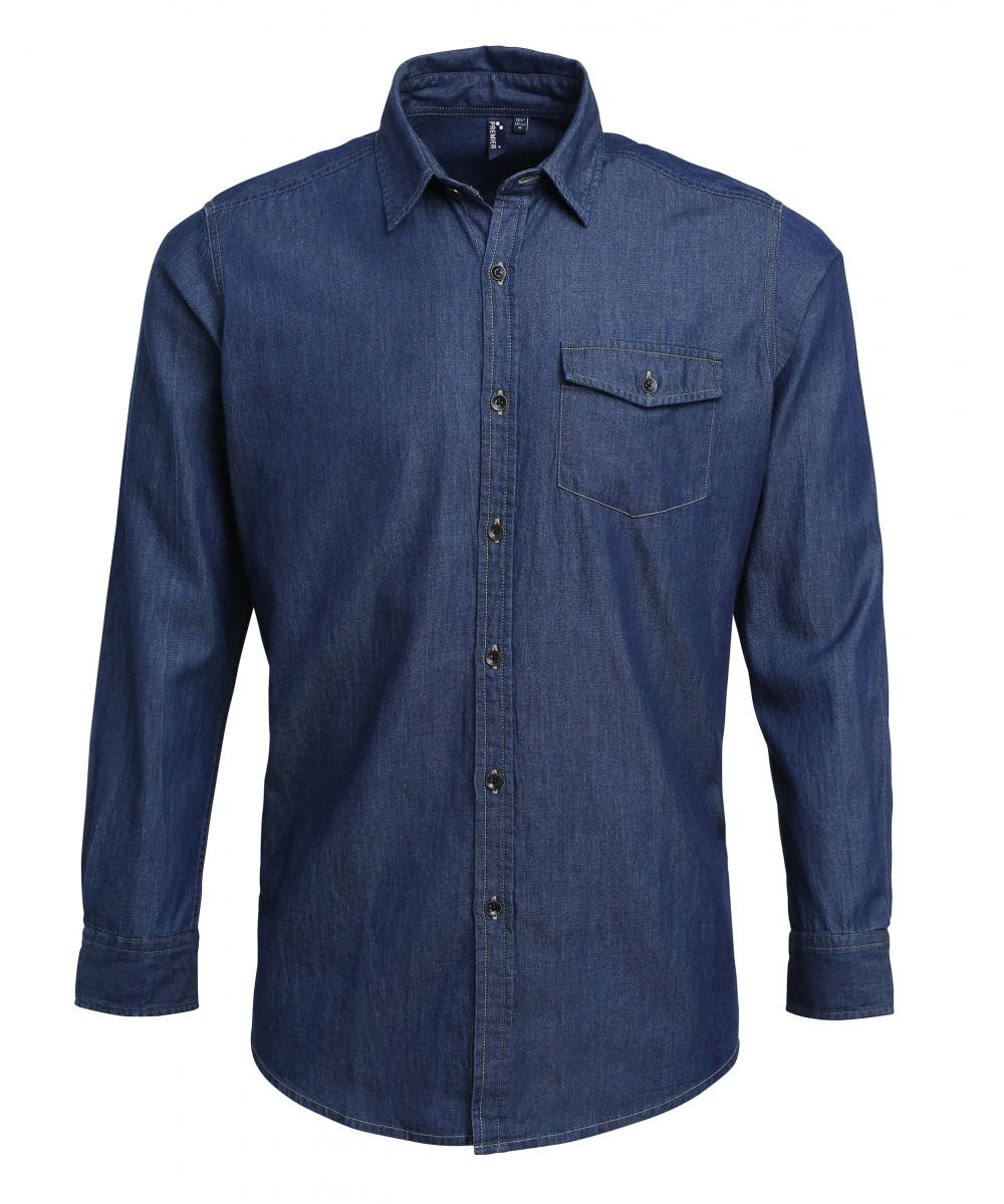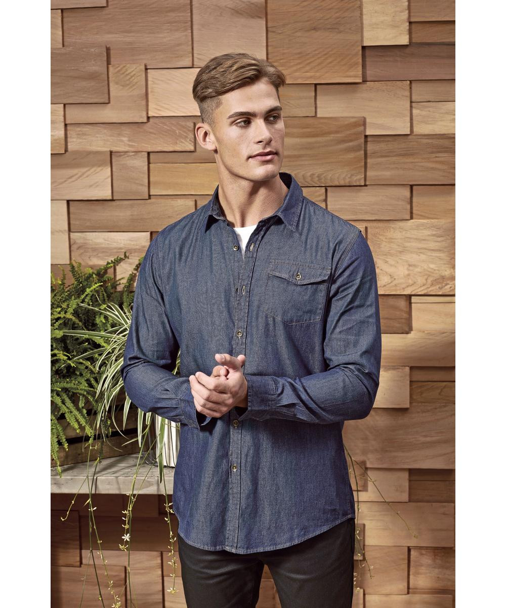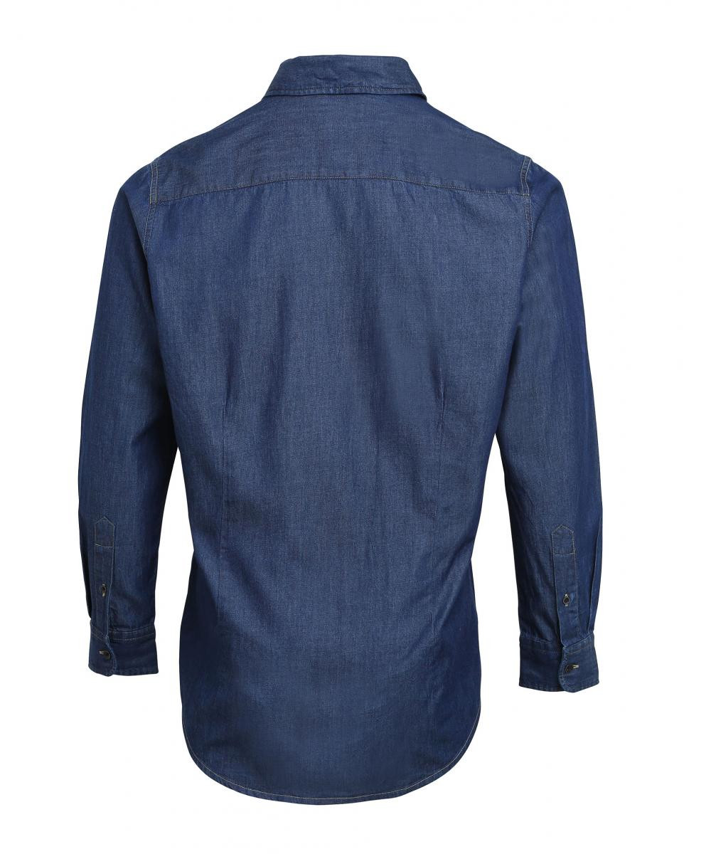 Jeanshemd aus 100% Baumwolle | Kontrastnähte | Brusttasche links | Manschettenknöpfe und geknöpfter Ärmelschutz | Abgerundeter Saum