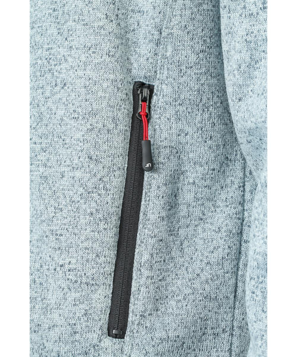 Modische Strickfleece-Jacke mit Stehkragen | Weiches, wärmendes, pflegeleichtes Material in Melangeoptik | Außenseite Strickoptik, Innenseite flauschig weich angeraut | Figurbetonende Teilungsnähte | Seitliche Taschen mit Reißverschluss | Kontrastfarbige Einfassung an Saum und Ärmel | Trendige Ärmeltasche mit Reißverschluss