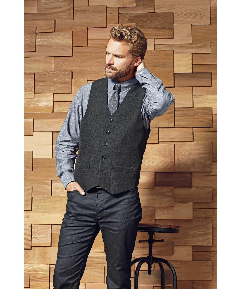 Modern geschnittene Weste mit fünf Knöpfen | Zwei kleine Fronttaschen | Rückenteil aus Satin | Durchgehend gefüttert | Rückseitiger Verstellzug | WRAP-Zertifizierung