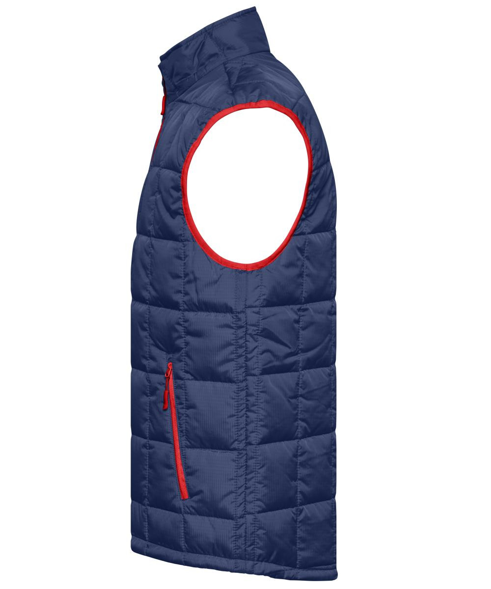 Steppweste mit wärmender Thinsulate™3M-Wattierung | Leichtes Rip-Stop-Gewebe | Windabweisend | Optimaler Wärmeschutz bei geringer Materialdicke | Unterlegter Front-Reißverschluss mit Kinnschutz | Kontrast-Reißverschlüsse, -Innenfutter und -Börtchen am Armausschnitt | Großes JN-Logo im Rückenteil innen | Elastische Kordel mit Stopper am Saum | Reißverschluss zur Rückenveredelung