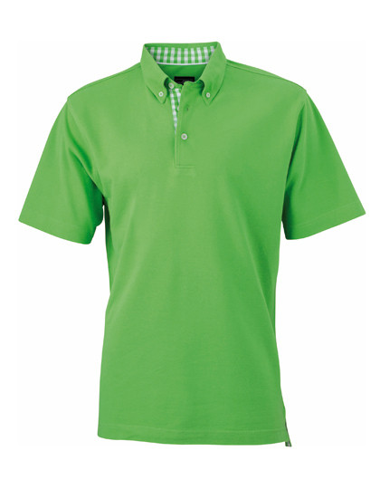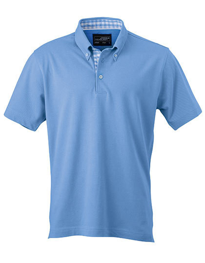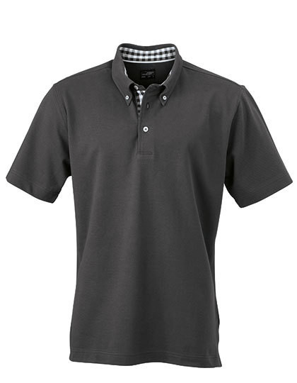 Button-Down-Polo mit modischem Einsatz | Feine, klassische Piqué-Qualität | Gekämmte, ringgesponnene Baumwolle | Konfektionierter Button-Down-Kragen | Besatz in Kragensteg, Knopfleiste innen und Seitenschlitzen | 3 Knöpfe in Kontrastfarbe | Halbmond Ton in Ton