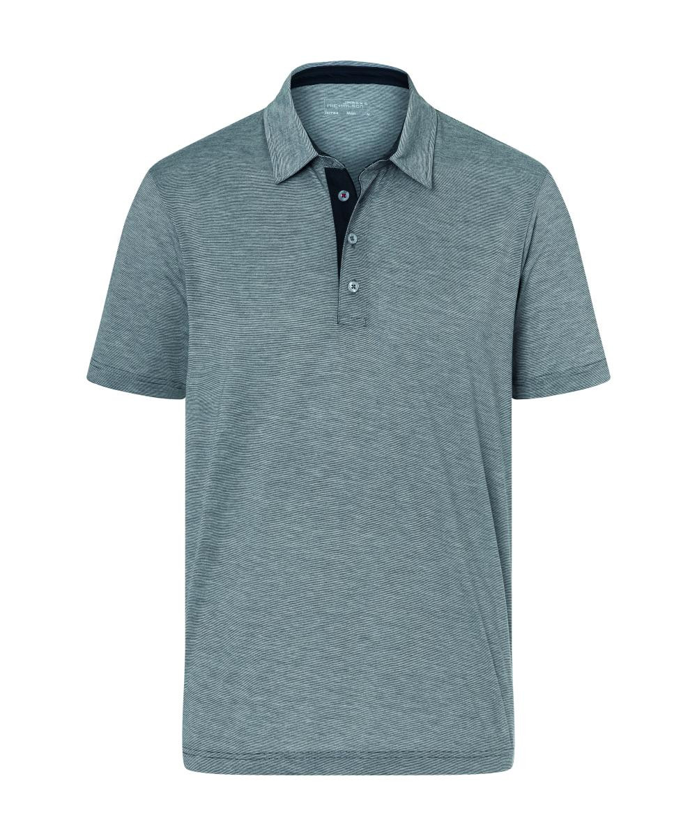 Funktionspolo für Freizeit und Sport | Angenehme Single Jersey Qualität in dezentem Streifendesign | Atmungsaktiv | Feuchtigkeitsregulierend | Schnelltrocknend | Kragensteg und Knopfleiste innen in Kontrastfarbe | Konfektionierter Kragen | 4 Knöpfe