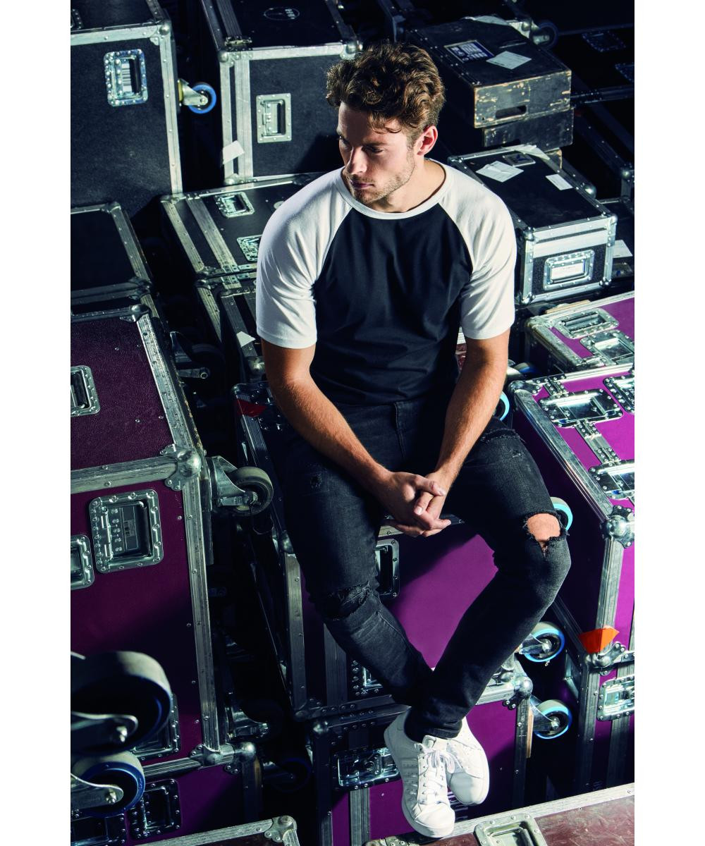 Ärmel und Krageneinfassung in Kontrastfarbe | Single-Jersey | Viertelarm-Raglan-Shirt | Gekämmte Baumwolle