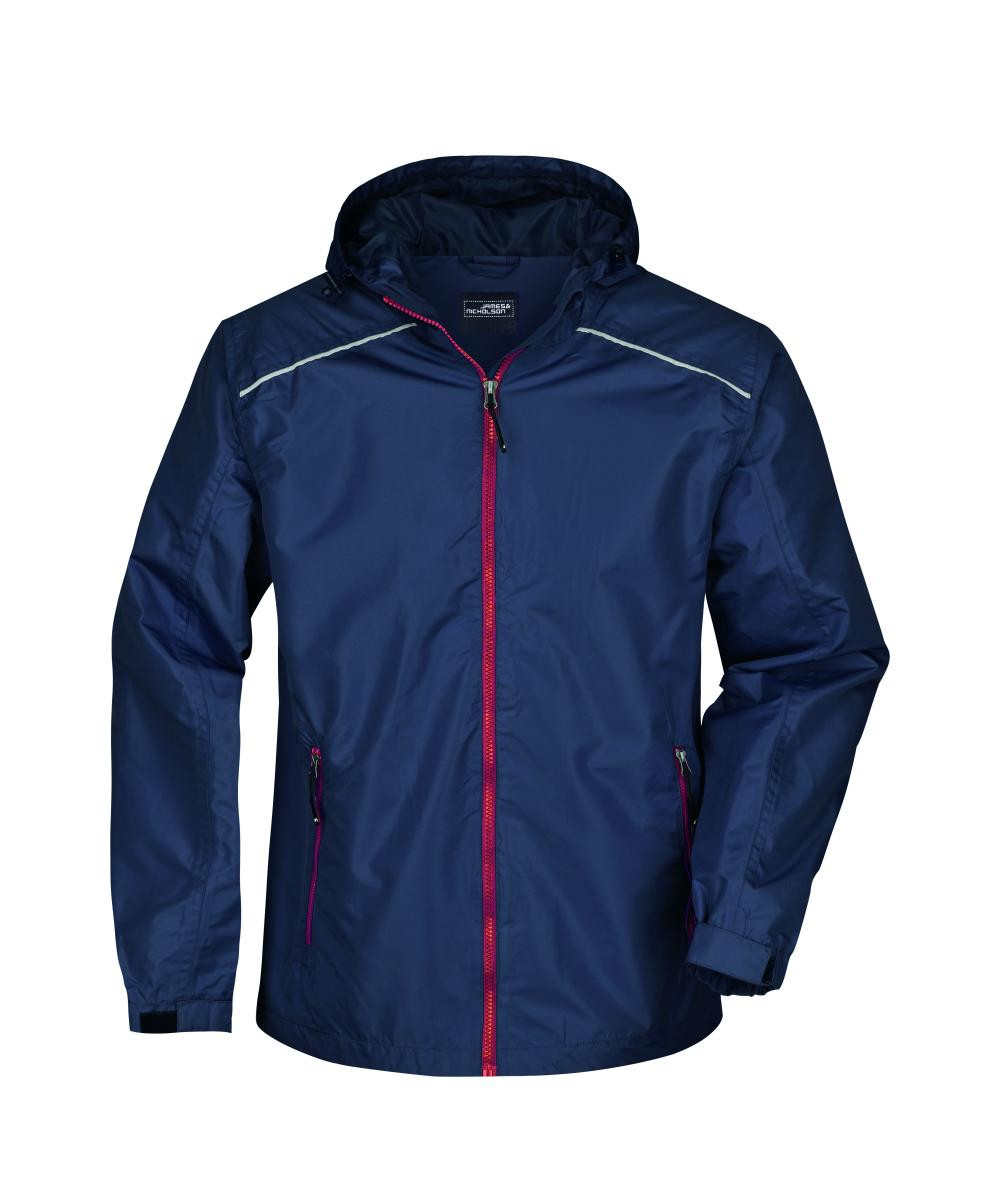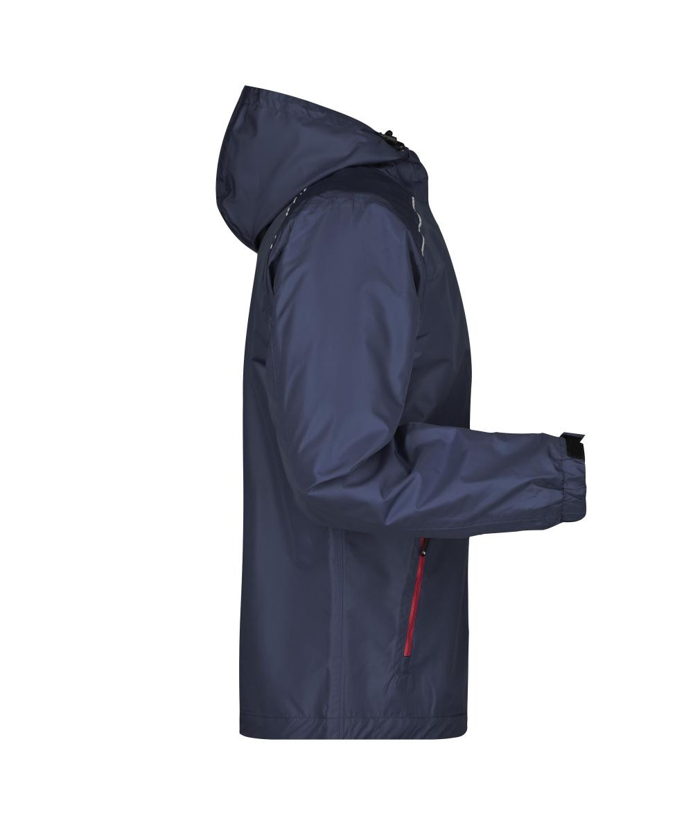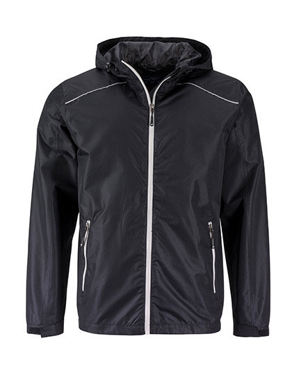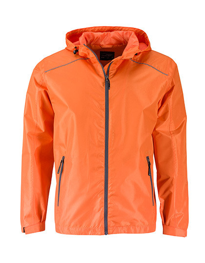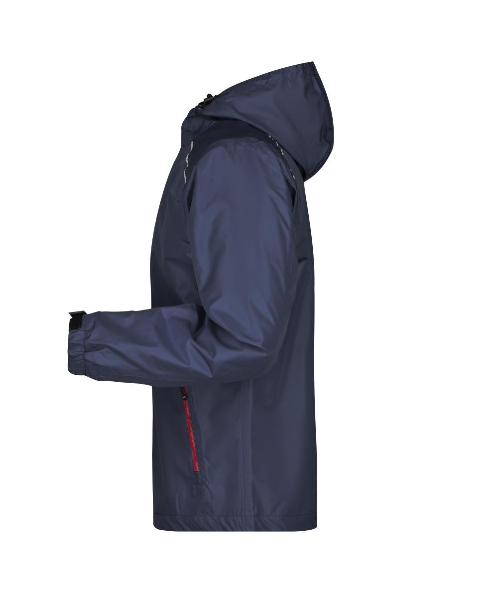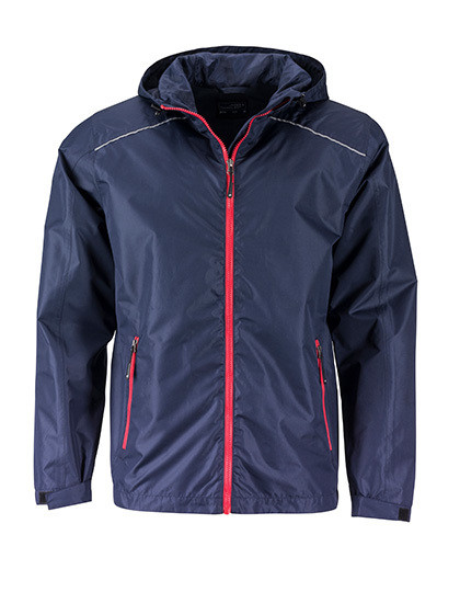 Sportliche, funktionale Outdoorjacke | Wind- und wasserdichtes Gewebe (3.000 mm Wassersäule) mit TPU Beschichtung | Atmungsaktiv und wasserdampfdurchlässig (1.500g/m² / 24h) | Versiegelte Nähte | Kontrastfarbene Reißverschlüsse | Unterlegter Front-Reißverschluss mit Kinnschutz | Angeschnittene, verstellbare Kapuze mit elastischer Kordel | Zwei Seitentaschen mit Reißverschluss | Innentasche | Reflektierende Details an Kapuze, Vorder und Rückenteil | Reißverschluss zur Rückenveredelung
