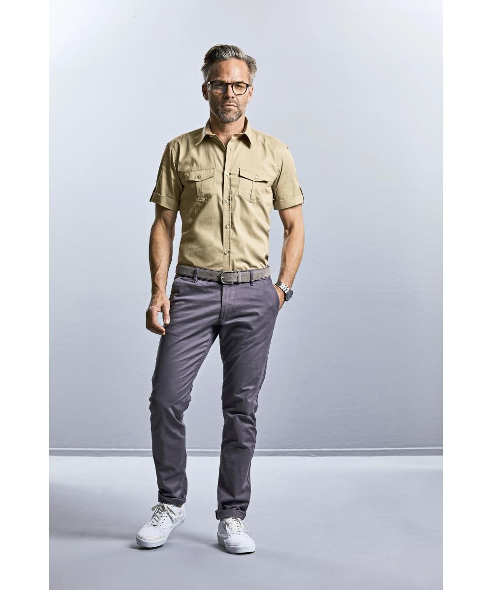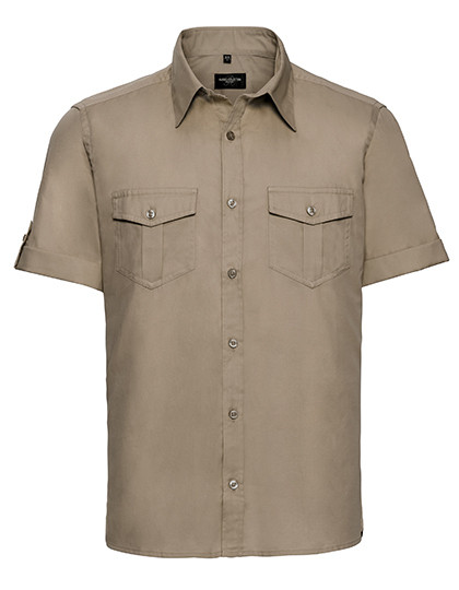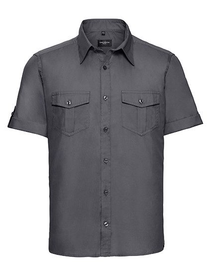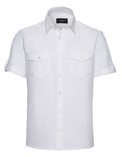 Men`s Roll Short Sleeve Fitted Twill Shirt