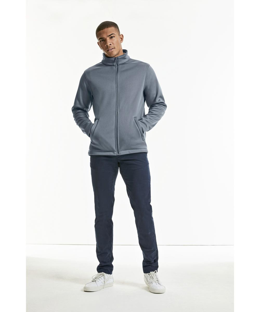 Gestricktes Softshell-Material | Schutz gegen Wind und Kälte, hohe Atmungsaktivität | Wasserabweisende Du PontTM Teflon® DWR-Beschichtung | Verschweißtes Microfleece-Innenfutter | Zwei Reißverschluss-Taschen | Verlängertes Rückenteil, Nackenband | Eingefasste Innennähte am Reißverschluss | Innenseitige Kopfhörerführung