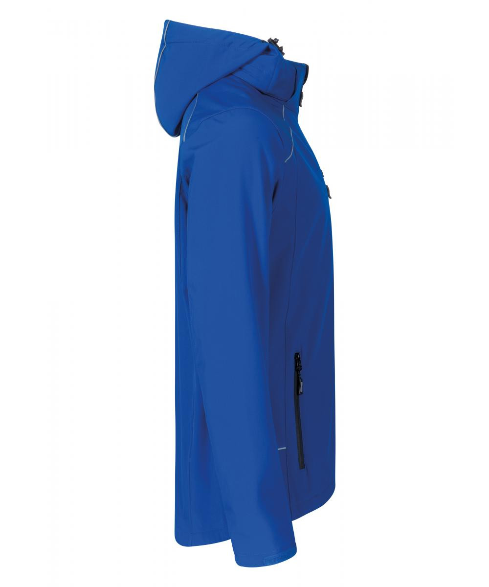 Abnehmbare und volumenregulierbare Kapuze | Wasserdichte Reißverschlüsse | Kinnschutz | Napoleontasche | Ärmeltasche | Verstellbare Armabschlüsse mit Klettverschluss | Tunnelzug am Saum mit Kordelstopper innen | Verlängertes Rückenteil mit abgerundetem Saum | Zwei Seitentaschen mit Reißverschluss | Eingenähter Schlüsselanhänger in Seitentasche | Reflektierende Paspeln und Reißverschluss-Anhänger | Teilungsnähte | Neutrales Größenetikett | Atmungsaktiv | Wasserdicht 8.000 mm | Softshell Bonded Fleece bi-elastisch | Außenmaterial: 95% Polyester / 5% Elasthan | Innenmaterial: 100% Polyester