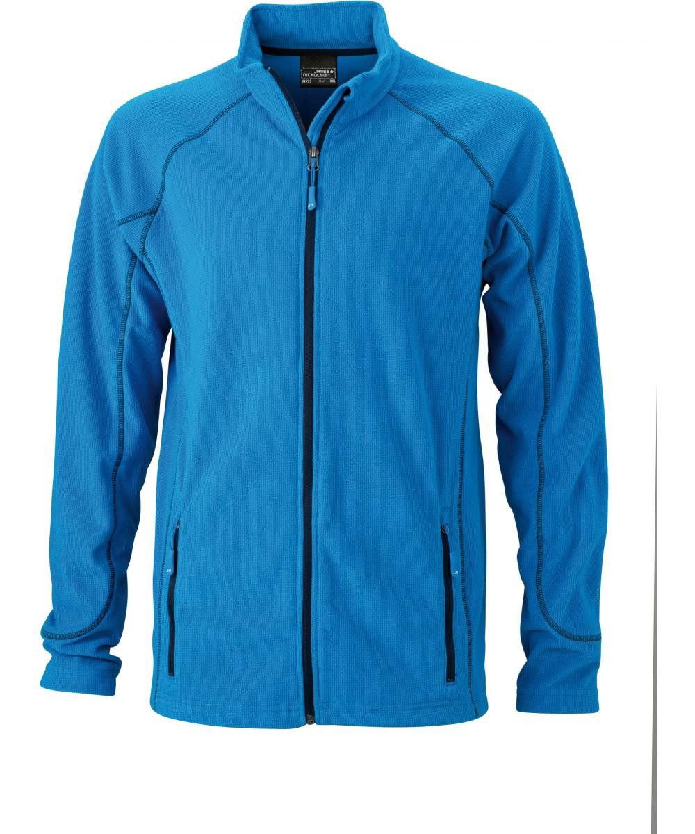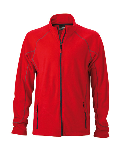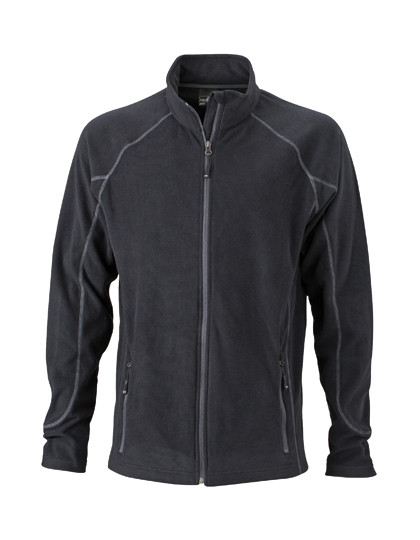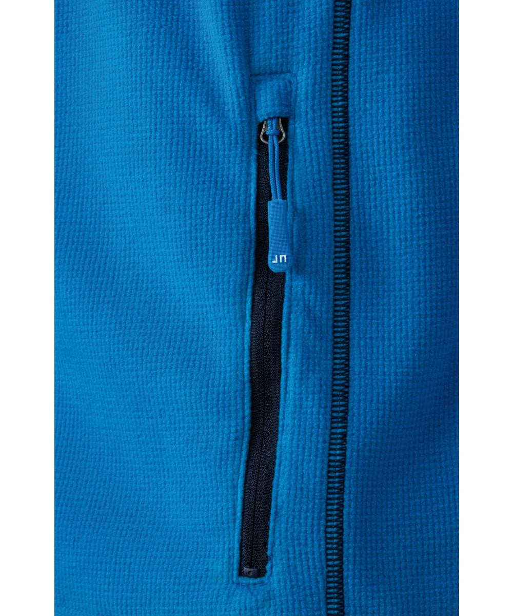 Leichte Outdoor-Fleecejacke | Angenehm weiche Qualität | Leicht strukturierte Außenseite, innen glatt | Stehkragen | Durchgehend unterlegter Reißverschluss mit Kinnschutz | Kontrastfarbige Flatlocknähte | Zwei seitliche Taschen mit Reißverschluss