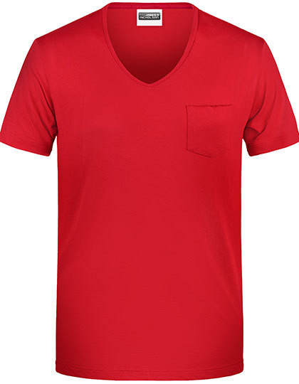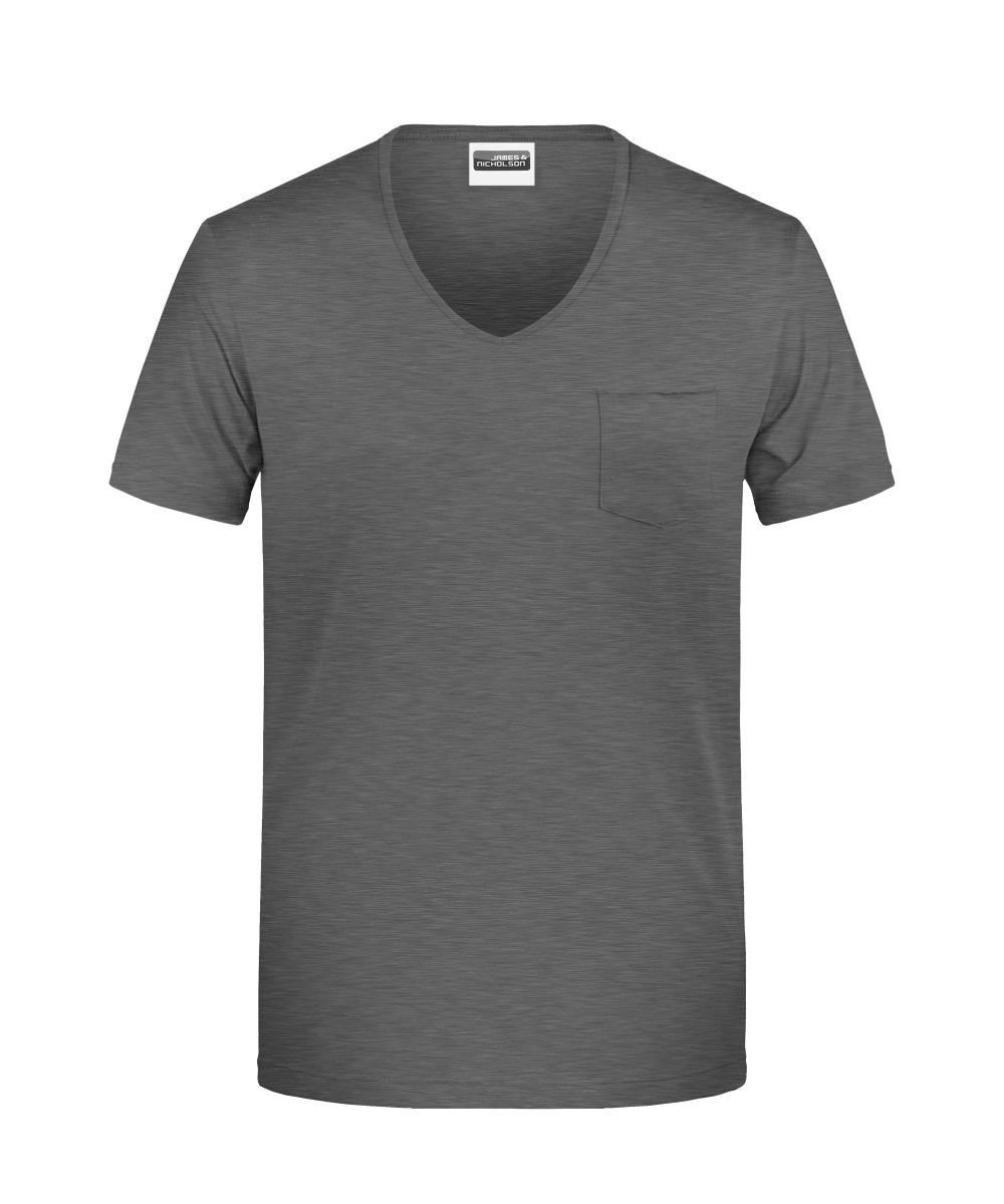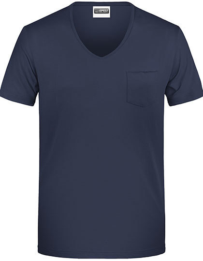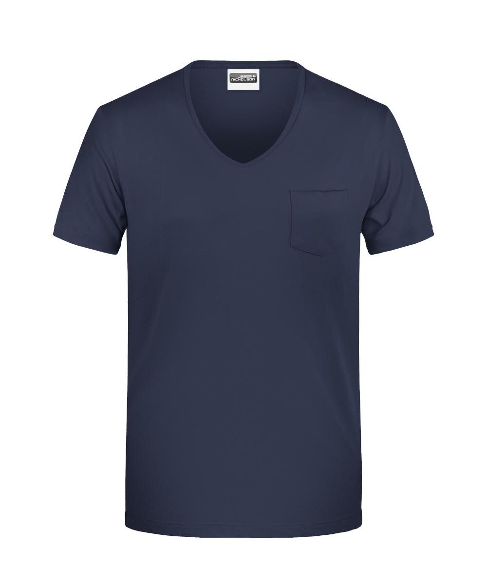 Herren T-Shirt mit modischer Brusttasche | 100% gekämmte, ringgesponnene Bio-Baumwolle, Single Jersey | V-Ausschnitt mit schmalem Bündchen | Bündchen mit Elasthan | Brusttasche mit Rollsaum 8 x 10 cm | Tear off!® - Label
