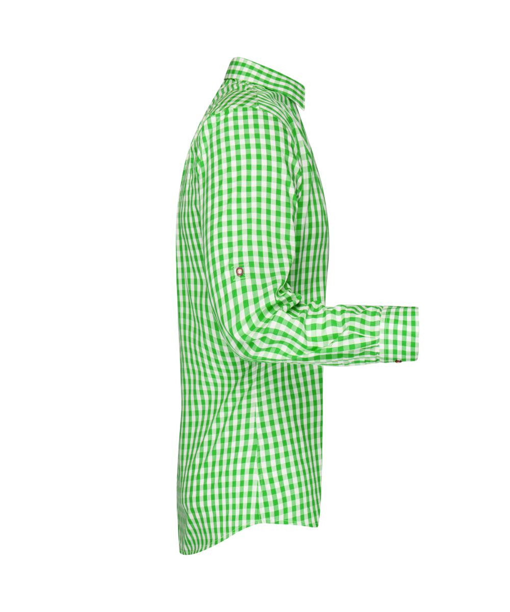 Herren-Hemd im klassischen Trachtenlook | Hochwertige, bügelleichte Popeline-Qualität mit Easy-Care Finish | Ärmel zum Hochkrempeln mit Lasche und Knopf | Abgerundeter Saum | Trachtenknöpfe aus Horn-Imitat | Classic fit | Leicht tailliert | Brusttasche | Zwei Rückenfalten