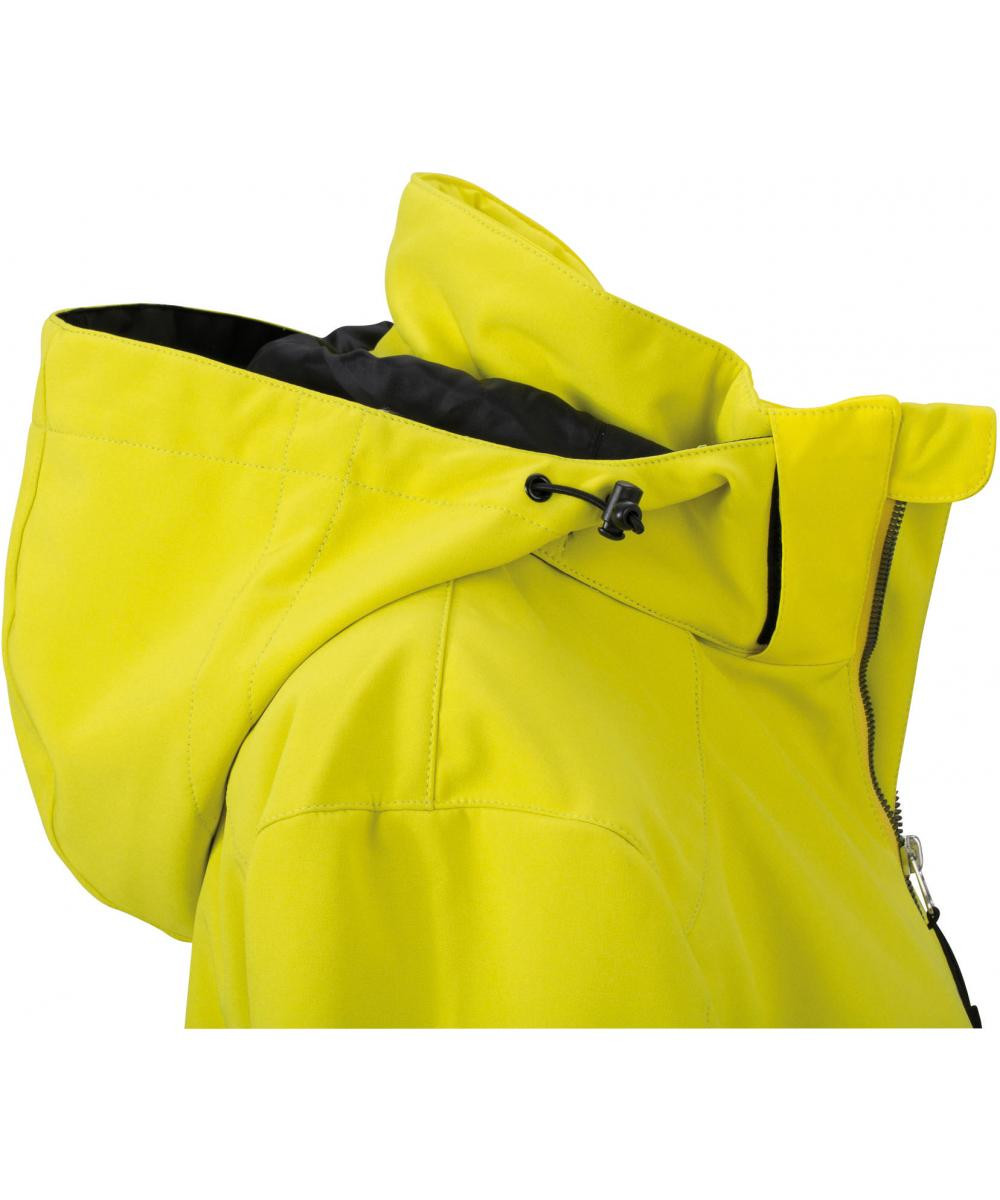 Elastische, gefütterte Softshelljacke | Wind- und wasserdichtes 3-Lagen Funktionsmaterial mit TPU-Membran (5.000 mm Wassersäule) | Atmungsaktiv (2.000 g/m²/24h) | Abzippbare, gefütterte Kapuze mit mehrfacher Weitenregulierung | Durchgehend unterlegter Frontreißverschluss mit Kinnschutz | Unterarmreißverschlüsse für zusätzliche Belüftung | 2 seitliche Taschen mit Reißverschluss, kleine Ärmeltasche mit Reißverschluss | Innentasche mit Reißverschluss, Handytasche innen | Regulierbarer Schneefang, Daumenschlupf | Elastische Kordel mit Stopper an Saum und Kapuze | Reißverschluss zur Rückenveredelung