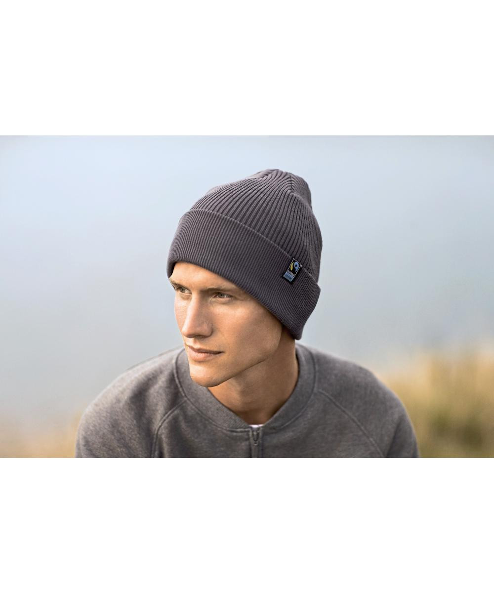 Fairtrade-zertifizierte Baumwolle | Zertifizierte, gekämmte Bio-Baumwolle | Beanie mit Bündchen | Doppellagig | Sichtbares Fairtrade-Flaglabel am Bündchen