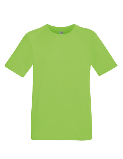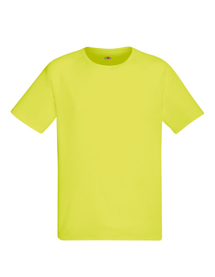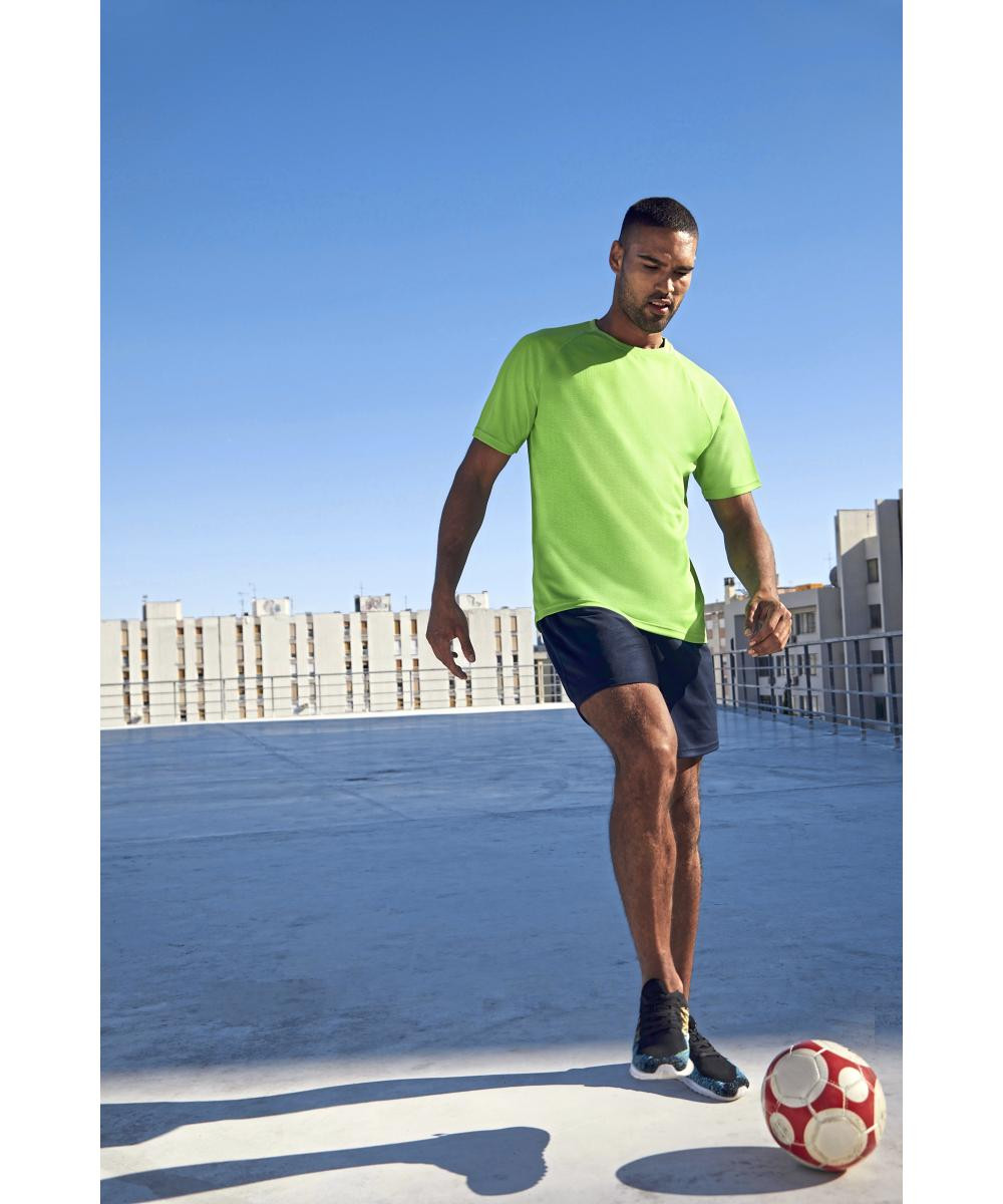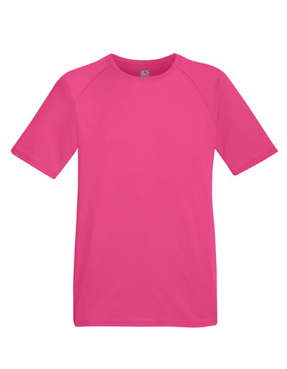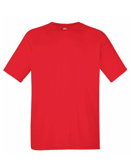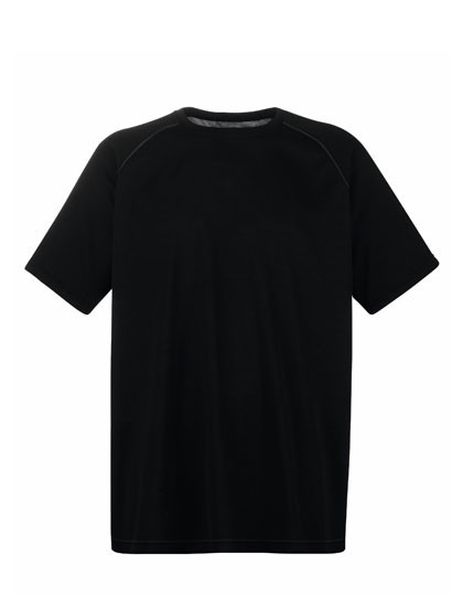 100% Polyester, strukturiert für guten Feuchtigkeitstransport und schnelle Trocknung | Sportliche Raglan-Ärmel mit sichtbaren Nähten | Gedrucktes Nackenlabel für Tragekomfort | Gleichfarbiges Nackenband