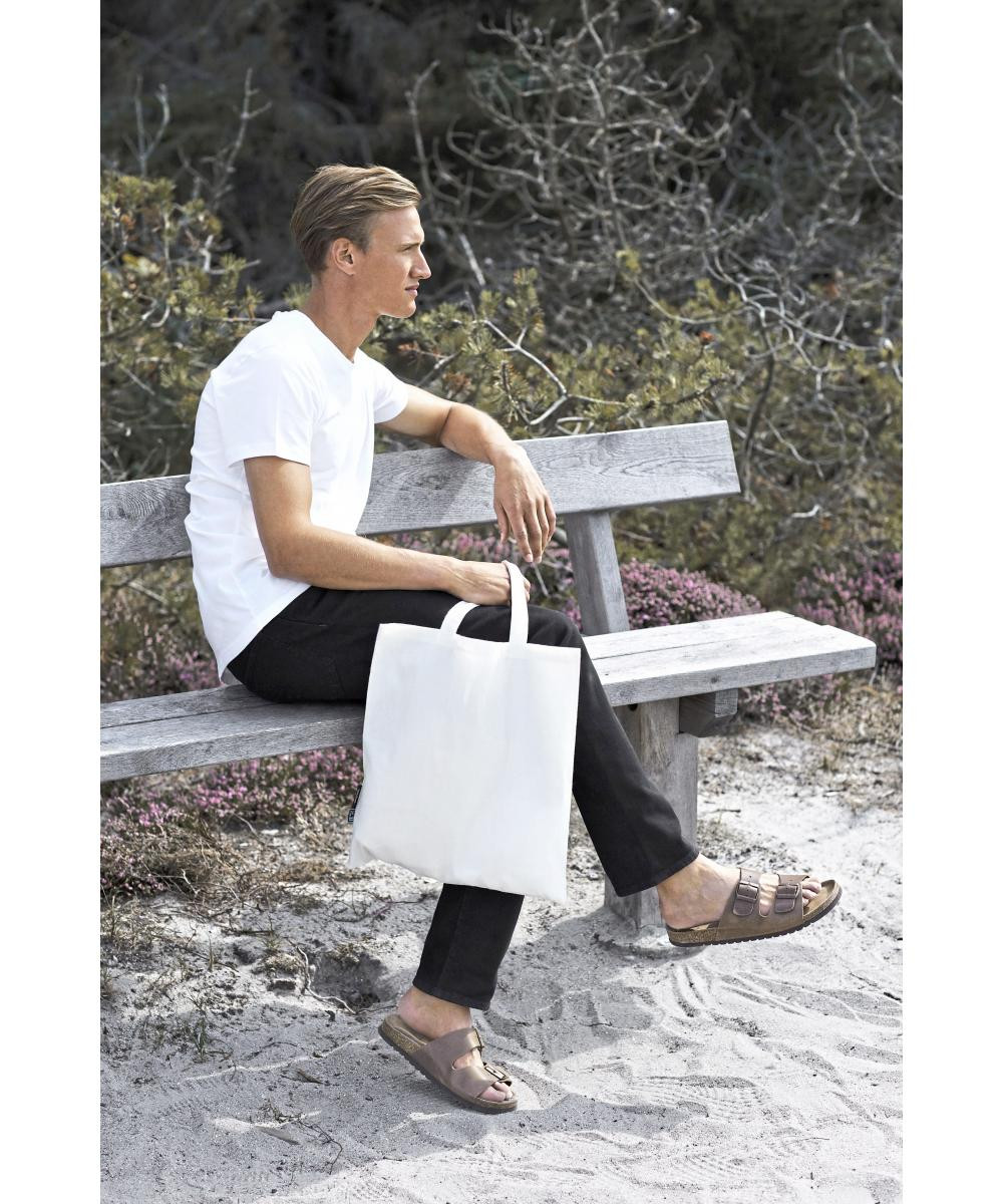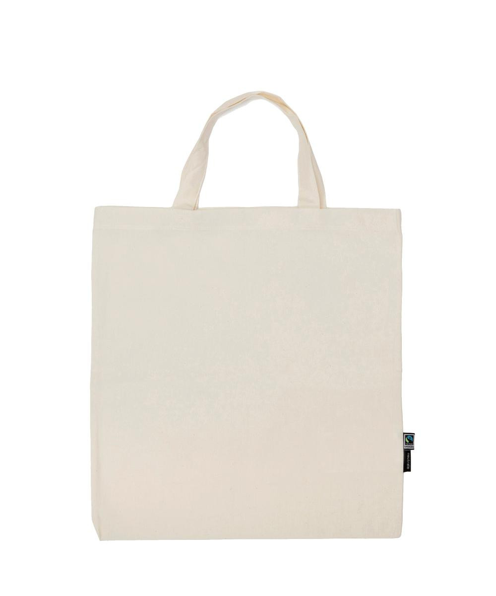 Fairtrade-zertifizierte Baumwolle | Zertifizierte, gekämmte Bio-Baumwolle | Feines Baumwollgewebe | Kurze Henkel | Neutral- & Fairtrade-Label an der Seite