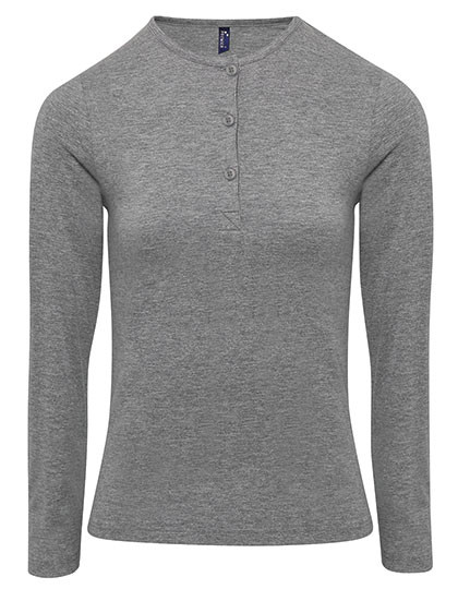 Krempelärmel mit Knopflasche am Oberarm | Rundhalsausschnitt und Knopfleiste mit drei Knöpfen | Halsausschnitt und Ärmelbündchen gerippt und eingefasst | Weiches und dehnbares Material