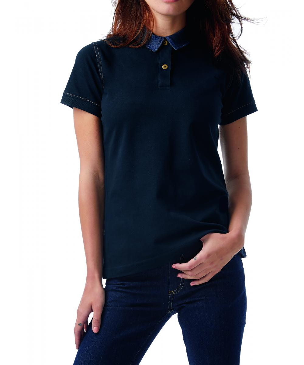100% einlaufvorbehandelte, gekämmte Ringspun-Baumwolle | Piqué-Poloshirt mit Denim-Kragen für den perfekten DNM RAW-Look | Ärmelbund aus 1x1 Ripp-Strick | Denim-Knopfleiste mit zwei Knöpfen | Kontrastfarbene Steppnähte an Ärmeln, Armausschnitten und Schultern | Metall-Knöpfe aus Antik-Messing | Nackenband | B&C Collection ist Mitglied der Fair Wear Foundation
