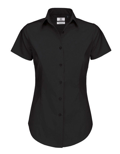 Women´s Poplin Shirt Black Tie Short Sleeve
