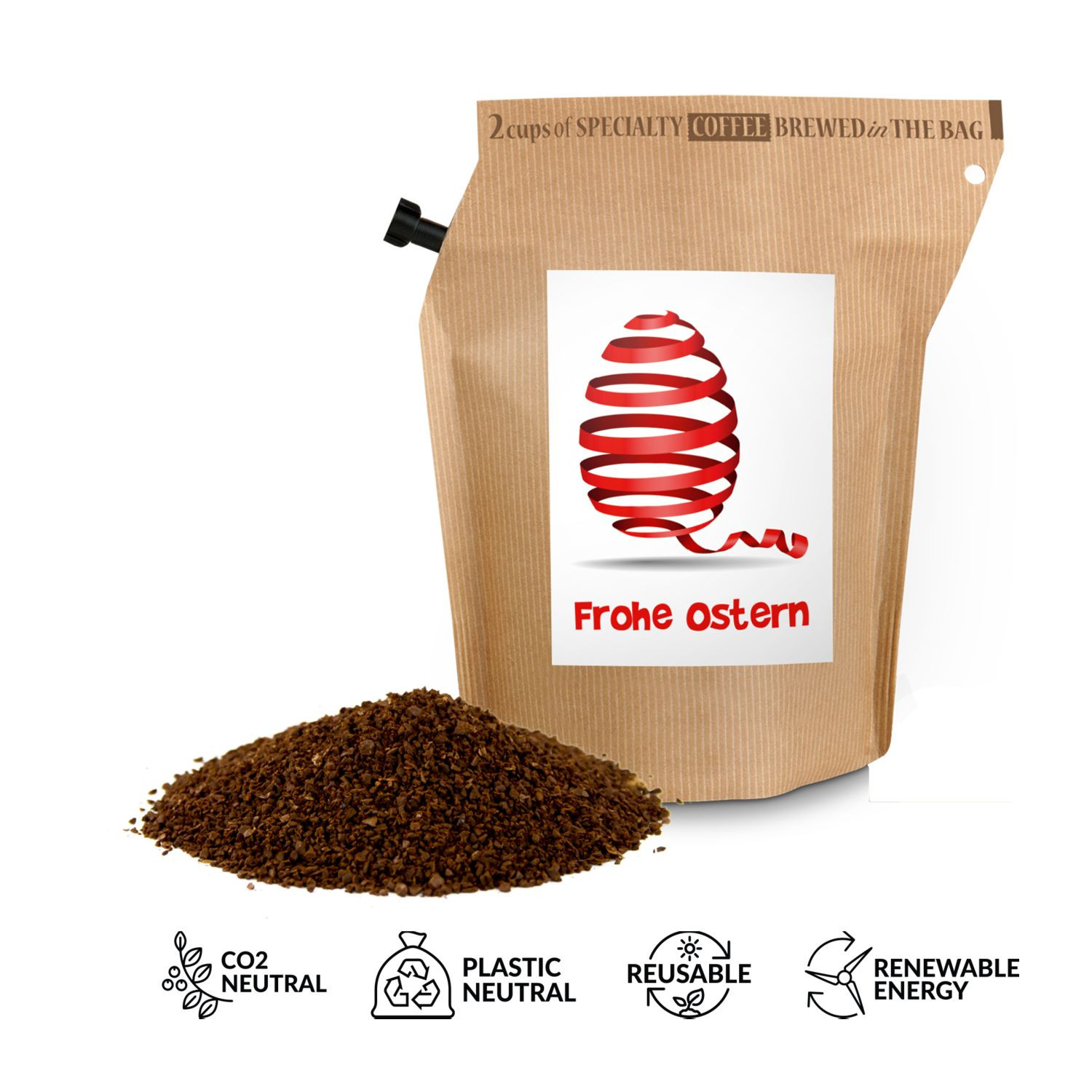 Verschenken Sie Fröhlichkeit und Genuss zur Osterzeit: kleines Präsent, große Wirkung - und das im Frühling! Mit diesen hübschen Brühbeuteln mit fairtrade Bohnen aus Honduras lässt sich die Hektik des Alltags schnell vergessen. Einfach heißes Wasser einfüllen, ziehen lassen, durch den integrierten Filter ausgießen und genießen. Kein Instant-Produkt! Pure Osterfreude. Ideal auch für das Büro oder für unterwegs. Ein Beutel ergibt zwei Tassen und kann wiederverwendet werden. Erhältlich mit 5 verschiedenen Oster-Aufklebern - oder natürlich mit Ihrer eigenen Idee. Dann fragen Sie uns einfach an!