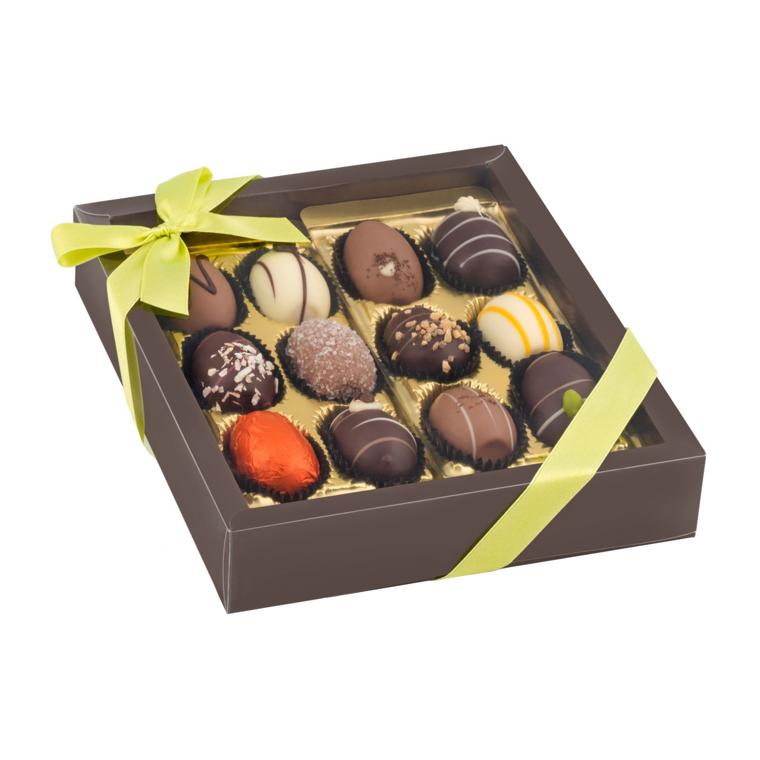 Geschenkartikel / Präsentartikel: Oster-Präsent Pralineneier - 12 Confiserie-Eier, 240 g