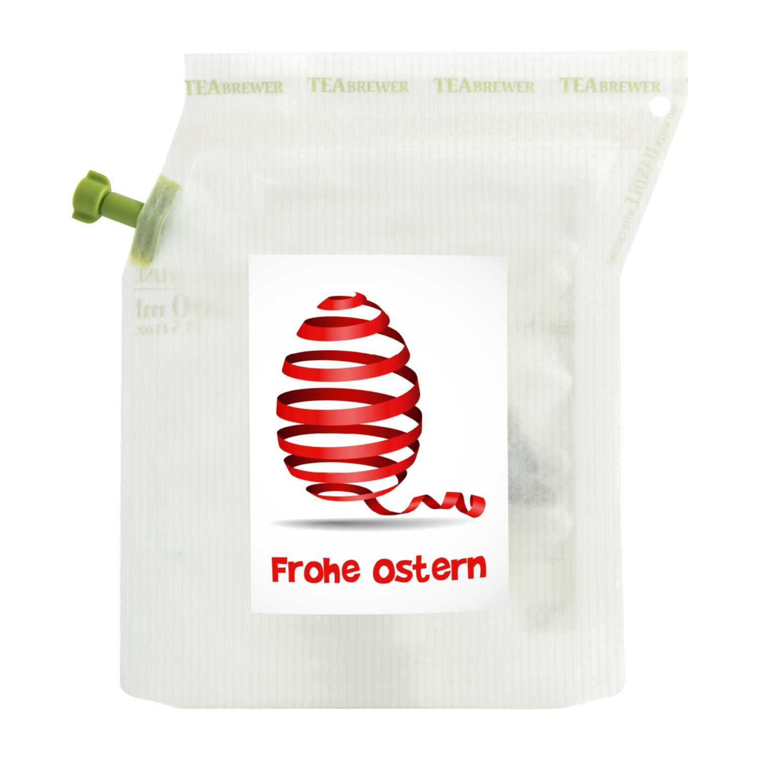 Verschenken Sie Fröhlichkeit und Genuss zur Osterzeit: kleines Präsent, große Wirkung - und das im Frühling! Mit diesen hübschen Brühbeuteln lässt sich die Hektik des Alltags schnell vergessen. Einfach heißes Wasser einfüllen, ziehen lassen, durch den integrierten Filter ausgießen und genießen. Kein Instant-Produkt! Pure Osterfreude. Ideal auch für das Büro oder für unterwegs. Ein Beutel ergibt zwei Tassen und kann wiederverwendet werden. Erhältlich in 3 Tee-Varianten (Earl Grey, Tasty Berry und Cool Mint) und mit 6 verschiedenen Oster-Aufklebern - wählen Sie die für Sie passende Kombination - oder wir setzen Ihre eigene Idee um. Dann fragen Sie uns einfach an!