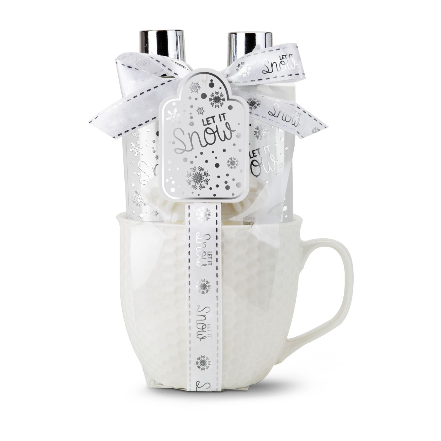 Mit diesem Set verschenken Sie eine Tasse voll Entspannung: 100 ml Duschgel, 100 ml Bodylotion sowie 1 Seife in Schneeflocken-Form (50 g). Alles duftet nach Jojoba-Mandel und ist stilvoll mit einer Schleife in einer weißen Keramik Jumbo-Tasse (ca. 450 ml) verpackt. Eine hübsche Aufmerksamkeit für eine kleine Auszeit vom stressigen Alltag. Die große Tasse mit modernem Design wird schnell zur Lieblingstasse werden - nicht nur in der Winterzeit.