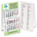 Aufsteller als Rückwand bedruckt mit europäischer Feiertagsliste oder mit Ihrem individuellen Firmeneindruck, Datumsschieber fertig um den Kalender montiert