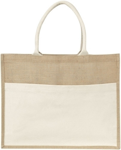 Shopper 'Nature' aus Jute, mit Fronttasche, 9,5 cm Boden- und Seitenfalte, kurze Henkel