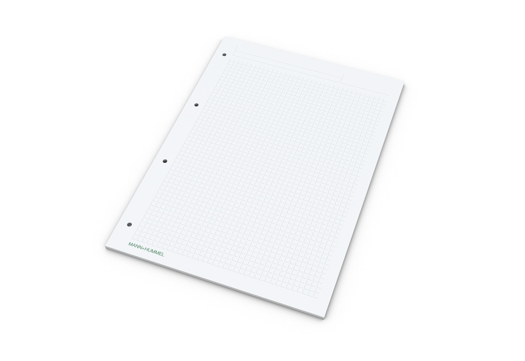 Format: 210 x 297 mm (DIN A4). Umfang: 50 Blatt. Verarbeitung: Am Kopf an Pappunterlage geleimt; 4-fach Abheftlochung (Alternativ: 2-fach Abheftlochung). Material: Weißes Papier 80 g/m². Druck: 4C-Quality inklusive. Hinweis: Qualität „Made in Germany“ - Bestellmengen müssen den Angebotsstaffeln entsprechen, Zwischenmengen sind nicht möglich