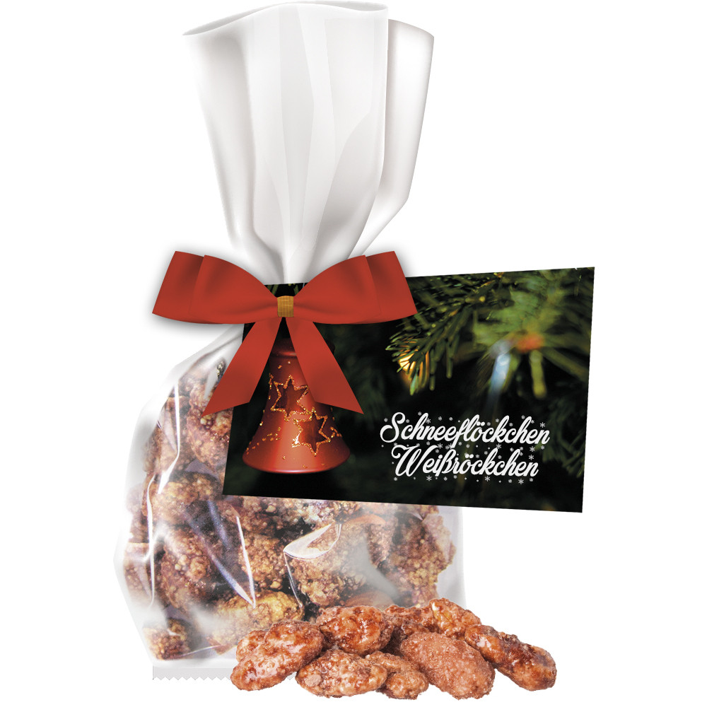 Feuergebrannte Mandeln, ca. 30g, Express Flachbeutel mit Werbekarte