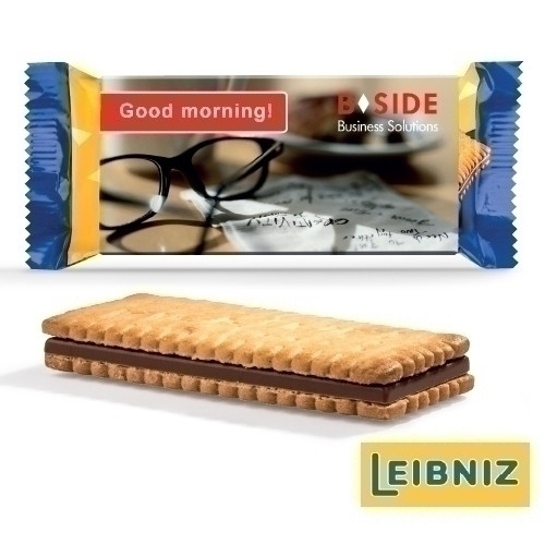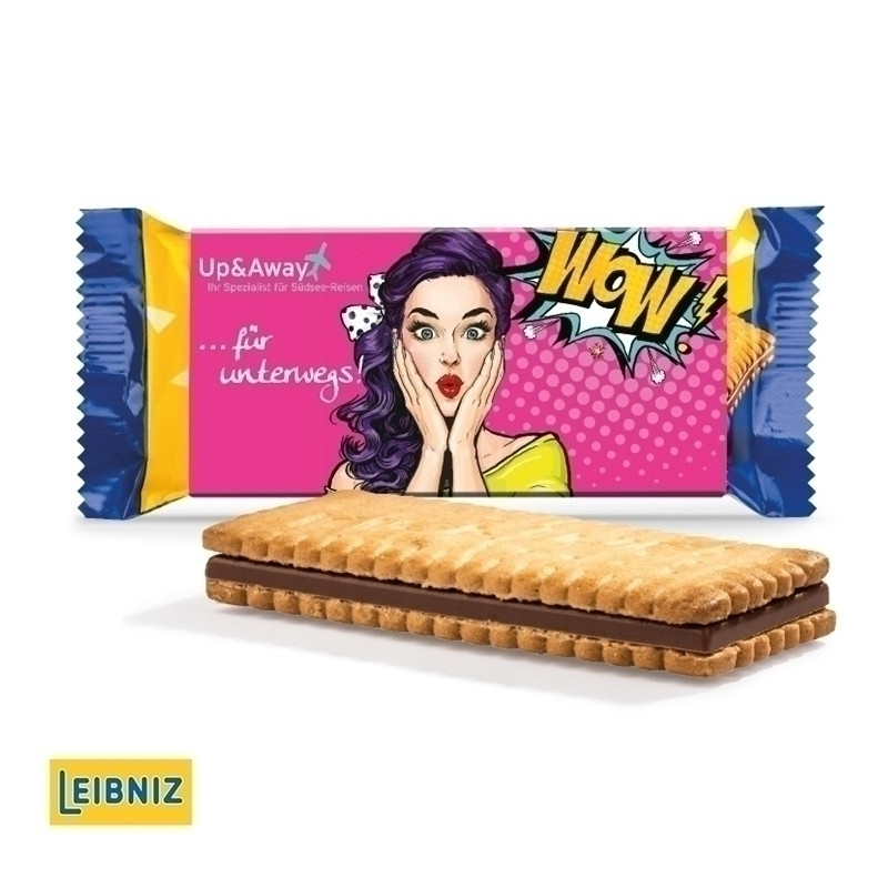 LEIBNIZ Pick Up Choco mit Werbeschuber aus weißem Karton, individuell bedruckt