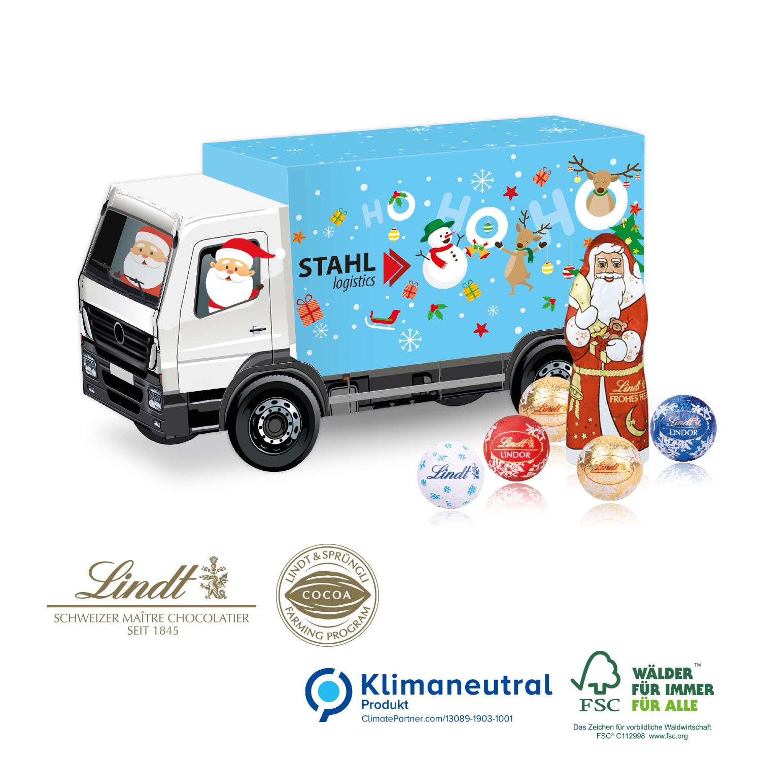 3D Präsent LKW mit Lindt Santa & Lindt Minis, Klimaneutral, FSC®