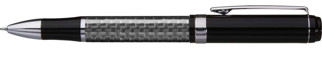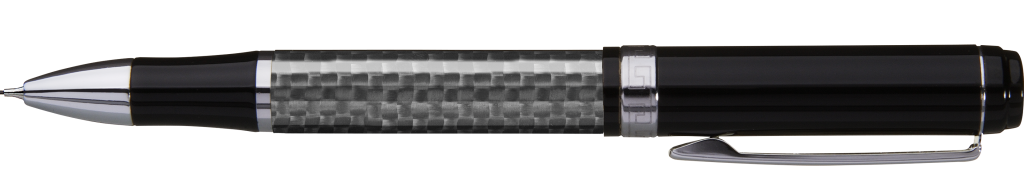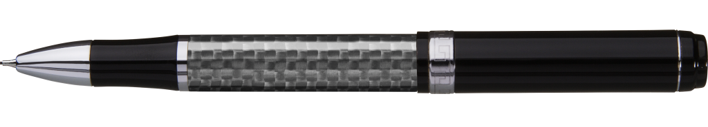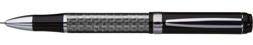 Carbonfaser Metalldrehbleistift (0,7 mm) mit Radiergummi im Schaft und Metallbeschlägen glanzverchromt.