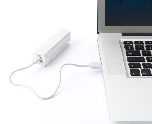 Powerbank 'Slimline' aus ABS-Kunststoff, 2200 mAh Kapazität, Ein- und Ausgangsleistung 5V/1000 mAh , USB- und Micro USB-Verbindungskabel (ca. 25 cm lang), für alle handelsüblichen Tablets, Smartphones und Digitalkameras verwendbar, Aufladezeit ca. 3 Std.