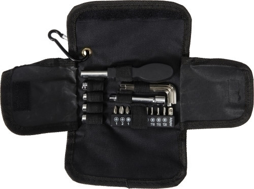 Werkzeug-Set 'Tool' mit 20 Teilen in Werkzeugtasche, aus Oxfordgewebe (600D) mit Klettverschluss und Karabinerhaken, Set bestehend aus Schraubendreher (verschiedene Aufsätze), 3 Inbusschlüsseln, 4 Nüssen, 10 Bits und Verlängerungsstück