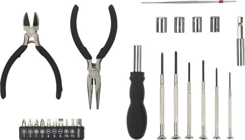 Werkzeug-Set 'Worker', bestehend aus Seitenschneider, Flachzange, Bit-Set (10-tlg.), Pinzette, Schraubendreher, 4 Metall-Nüssen, 6 Feinmechaniker-Schraubendrehern, inklusive Metallbox