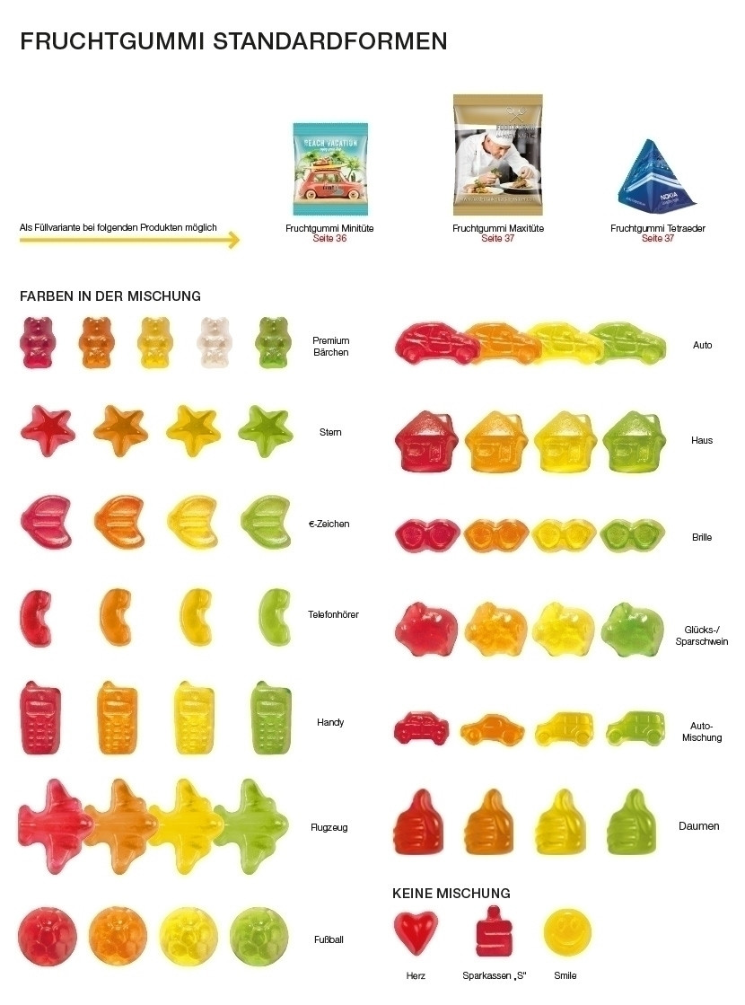 Fruchtgummi Maxituete, Standardformen