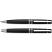 Charles Dickens Schreibset 'Leeds' aus Metall, Geschenk-Etui aus PU, Set bestehend aus Dreh-Kugelschreiber und Rollerball, Zierringe aus Metall, schwarze Mine