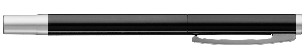 Metall-Rollerball mit gefedertem Clip. Oberfläche in silber matt mit glänzenden Beschlagteilen oder schwarz bzw. weiß glänzend mit matten Beschlägen.