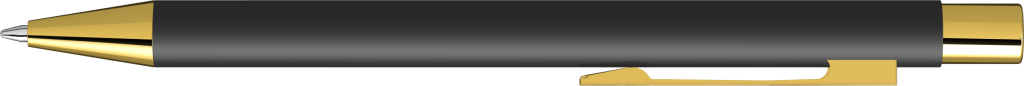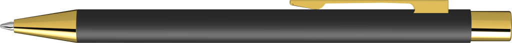 Metall-Druckkugelschreiber mit mattem Gehäuse in weiß oder schwarz. Metallclip, Metallspitze und Drücker gold glänzend.