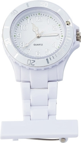 Krankenschwester-Uhr 'Hospital' aus Kunststoff, mit farbigen Ziffern, Befestigung erfolgt mit Sicherheitsnadel