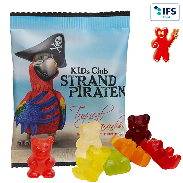 Die XXL-Bärchen der Marke Bären Company aus eigener Herstellung. XXL-Geschmack mit 10 % Fruchtgehalt aus Fruchtsaftkonzentrat, natürlichen Aromen und färbenden Pflanzenauszügen. Die Fruchtgummis sind farblich und geschmacklich bunt gemischt, in einem glänzend- oder matt-kaschiertem oder transparentem alternativ weißem Werbetütchen verpackt.